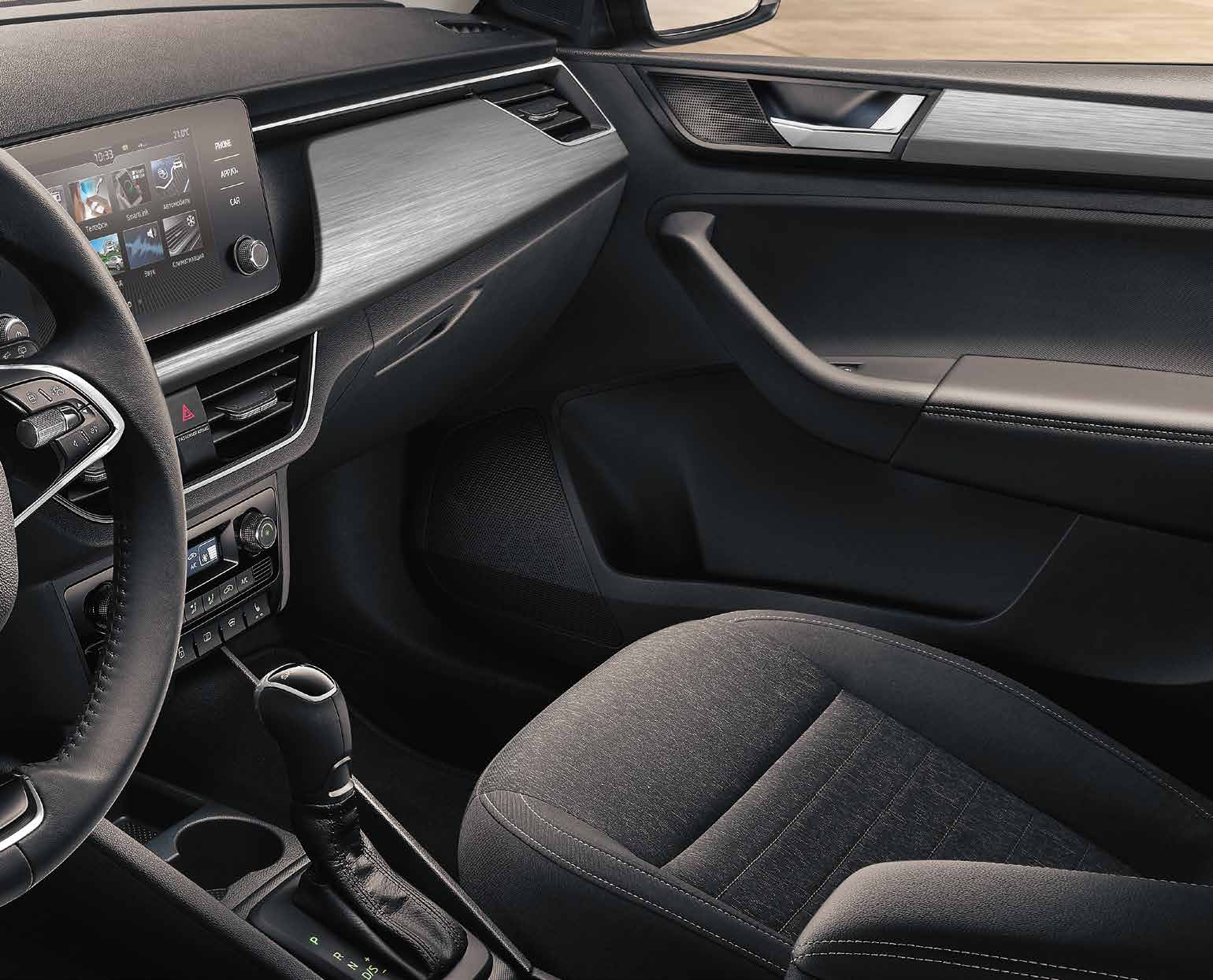 Подстаканник в центральной консоли Вещевые отделения в задних дверях Заднее сиденье неделимое, спинка делимая складная Манжета рычага КПП из искусственной кожи